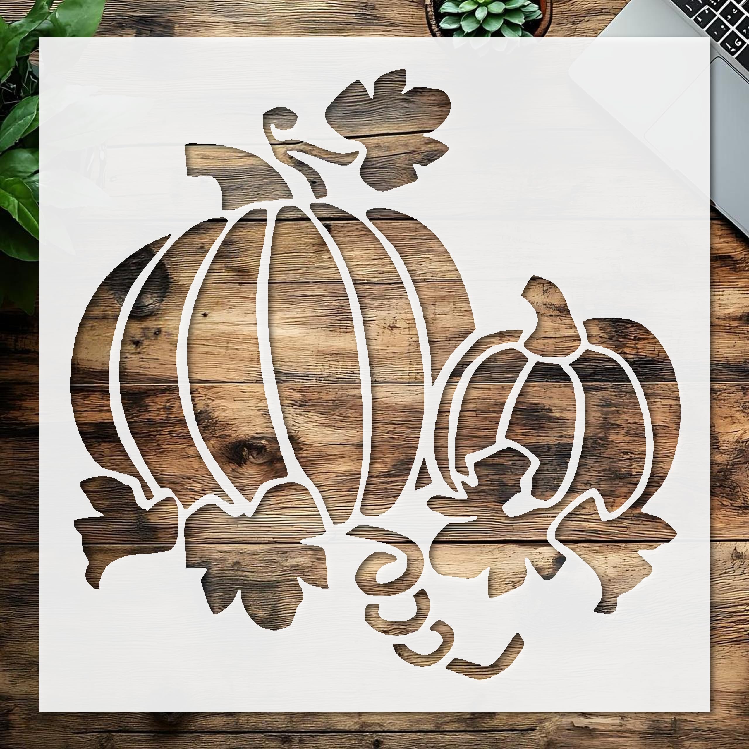 Professional Stencil Two Pumpkins, Plastic Reusable, Reusable Plastic, L x W, for DIY Crafts and Home Decor stencil for creating beautiful designs on various surfaces. Perfect for painting on wood, fabric, walls, and other materials. Reusable and durable for multiple projects.