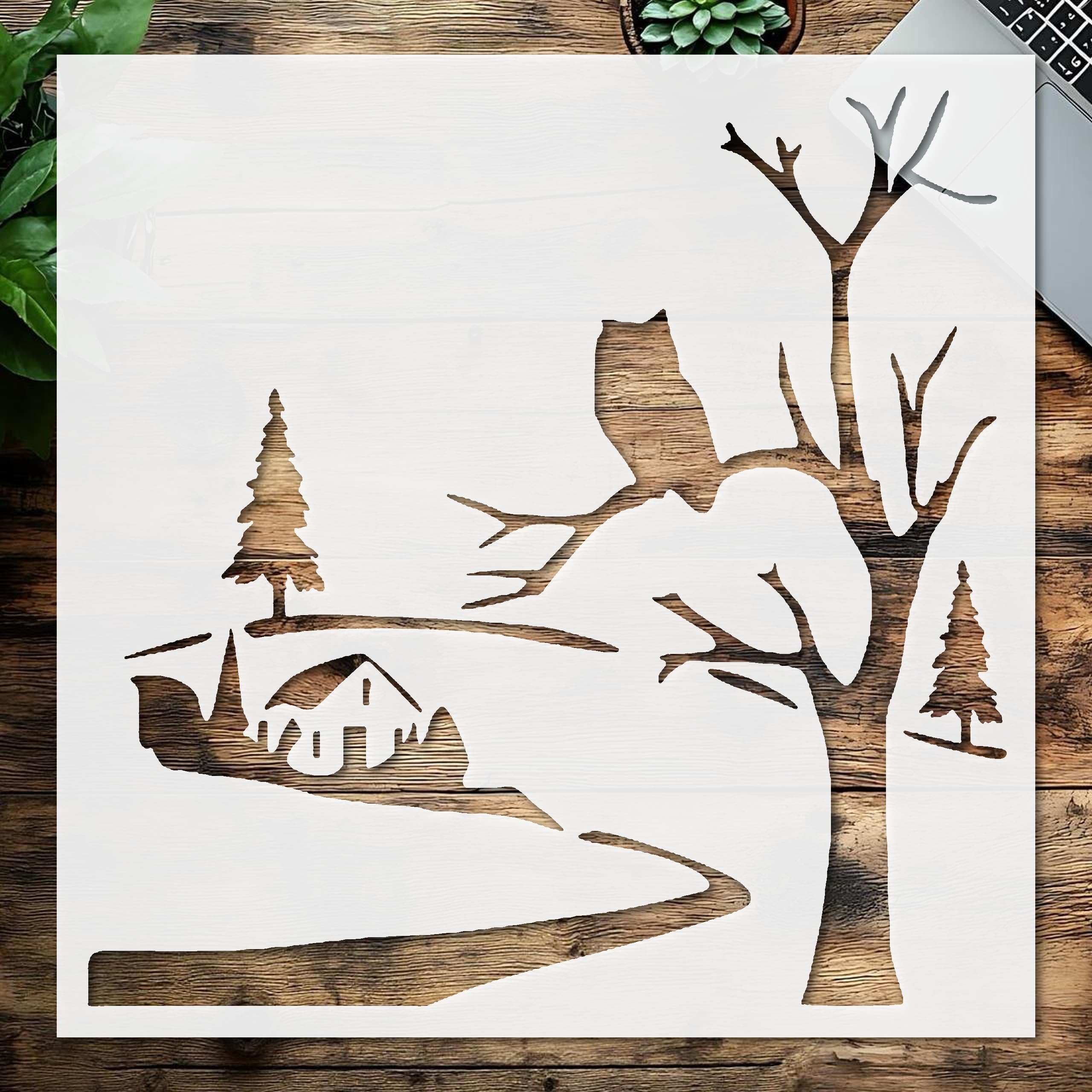 Professional Stencil Village owl, Plastic Reusable, Reusable Plastic, L x W, for DIY Crafts and Home Decor stencil for creating beautiful designs on various surfaces. Perfect for painting on wood, fabric, walls, and other materials. Reusable and durable for multiple projects.