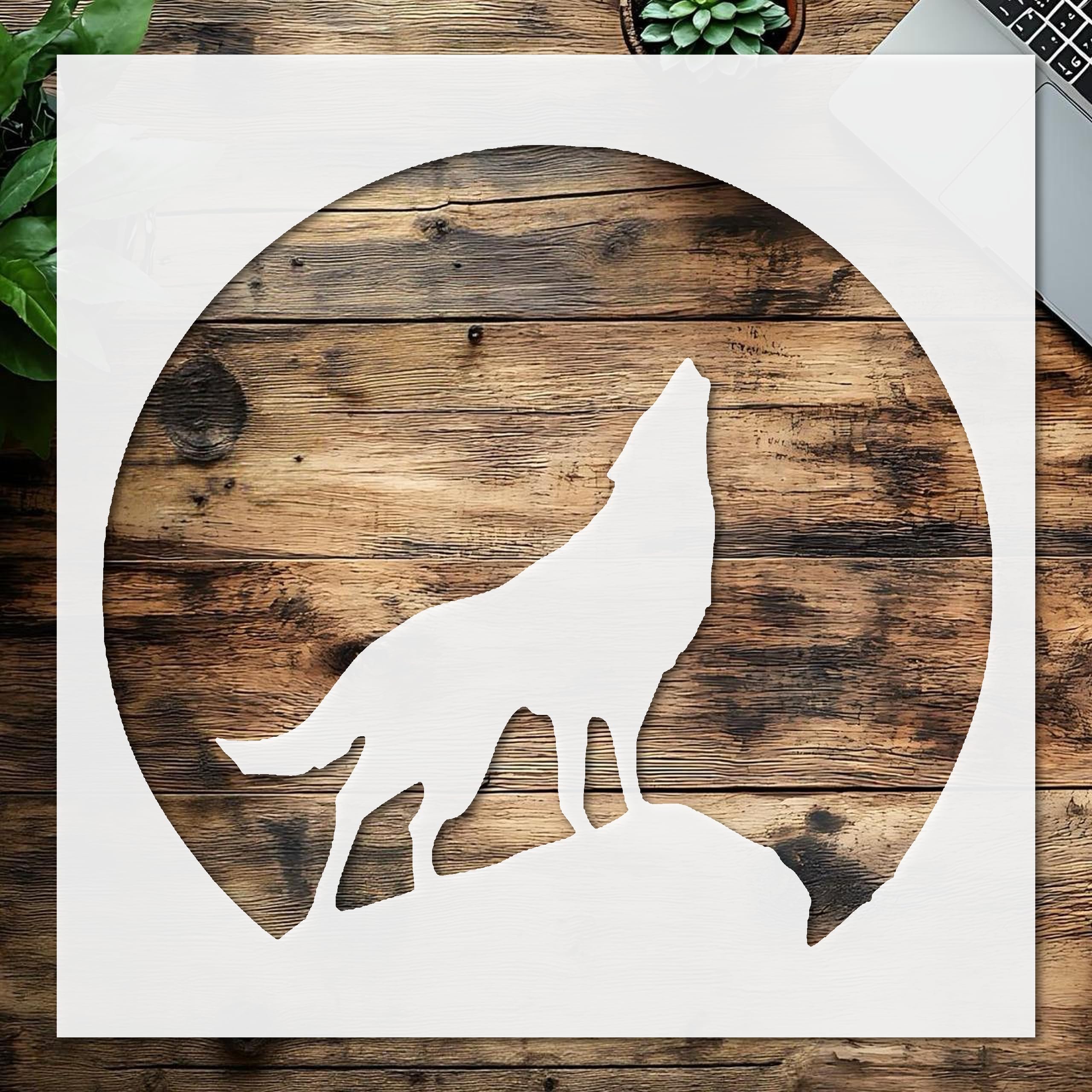 Professional Stencil Wolf on The Rock Full Moon, Plastic Reusable, Reusable Plastic, L x W, for DIY Crafts and Home Decor stencil for creating beautiful designs on various surfaces. Perfect for painting on wood, fabric, walls, and other materials. Reusable and durable for multiple projects.