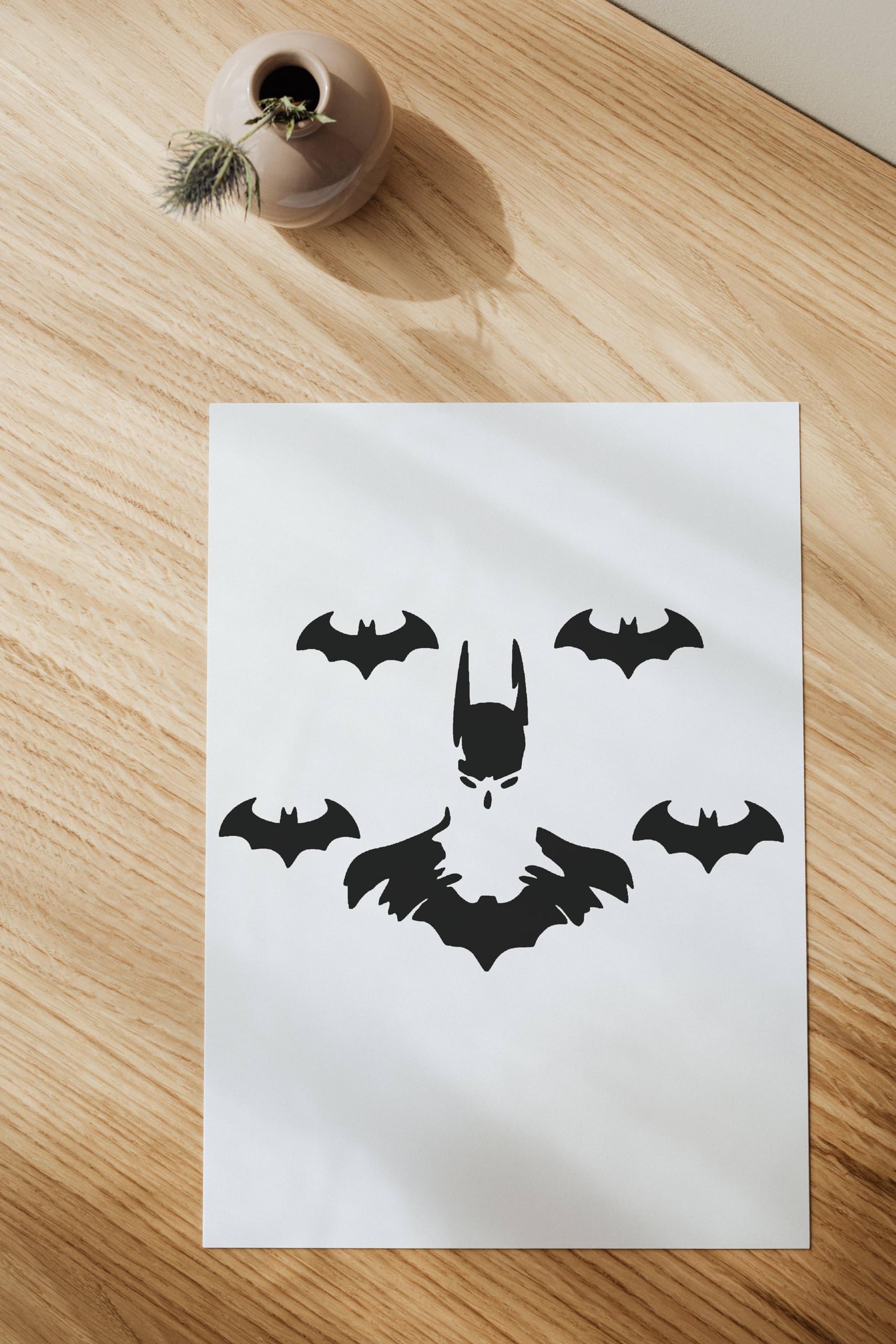 Embark on a creative adventure with our Batman with Bat Friends Stencil, a thrilling addition to any Batman enthusiast’s art supply collection. This reusable 10 mil Mylar stencil captures the excitement and mystery of famed protector alongside his bat friends, offering endless possibilities for artistic expression and DIY projects. Whether you’re aiming to bring a touch of superhero magic to your room’s decor, create custom apparel that stands out, or add an adventurous element to scrapbooking projects, this stencil is your ally. Its high-quality Mylar construction ensures durability and repeat use on various surfaces, including walls, fabric, wood, and paper. Easy to clean and maintain, this Batman stencil is designed for crafters, artists, and DIY enthusiasts of all skill levels. It’s a versatile tool that not only supports your creative projects but also inspires heroic creativity and storytelling. Unleash the power of the Dark Knight in your next project with our Batman with Bat Friends Stencil. It’s more than just a crafting tool; it’s a gateway to celebrating one of the most beloved superheroes in a unique and personalized way. Let Batman inspire your artistic journey and bring the excitement into your creative endeavors.