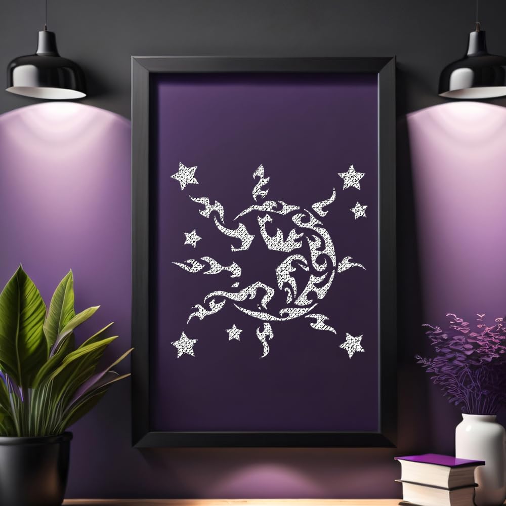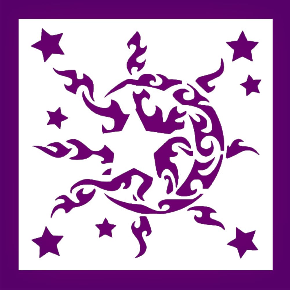 Professional Sun Moon Stars Abstract Pattern Stencil, Reusable Plastic, , Ideal for Painting and Craft Projects stencil for creating beautiful designs on various surfaces. Perfect for painting on wood, fabric, walls, and other materials. Reusable and durable for multiple projects.