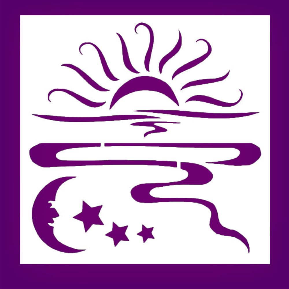 Professional Sunrise Sun Flare Stencil with Moon and Stars, Reusable Plastic, , Ideal for Painting Projects stencil for creating beautiful designs on various surfaces. Perfect for painting on wood, fabric, walls, and other materials. Reusable and durable for multiple projects.