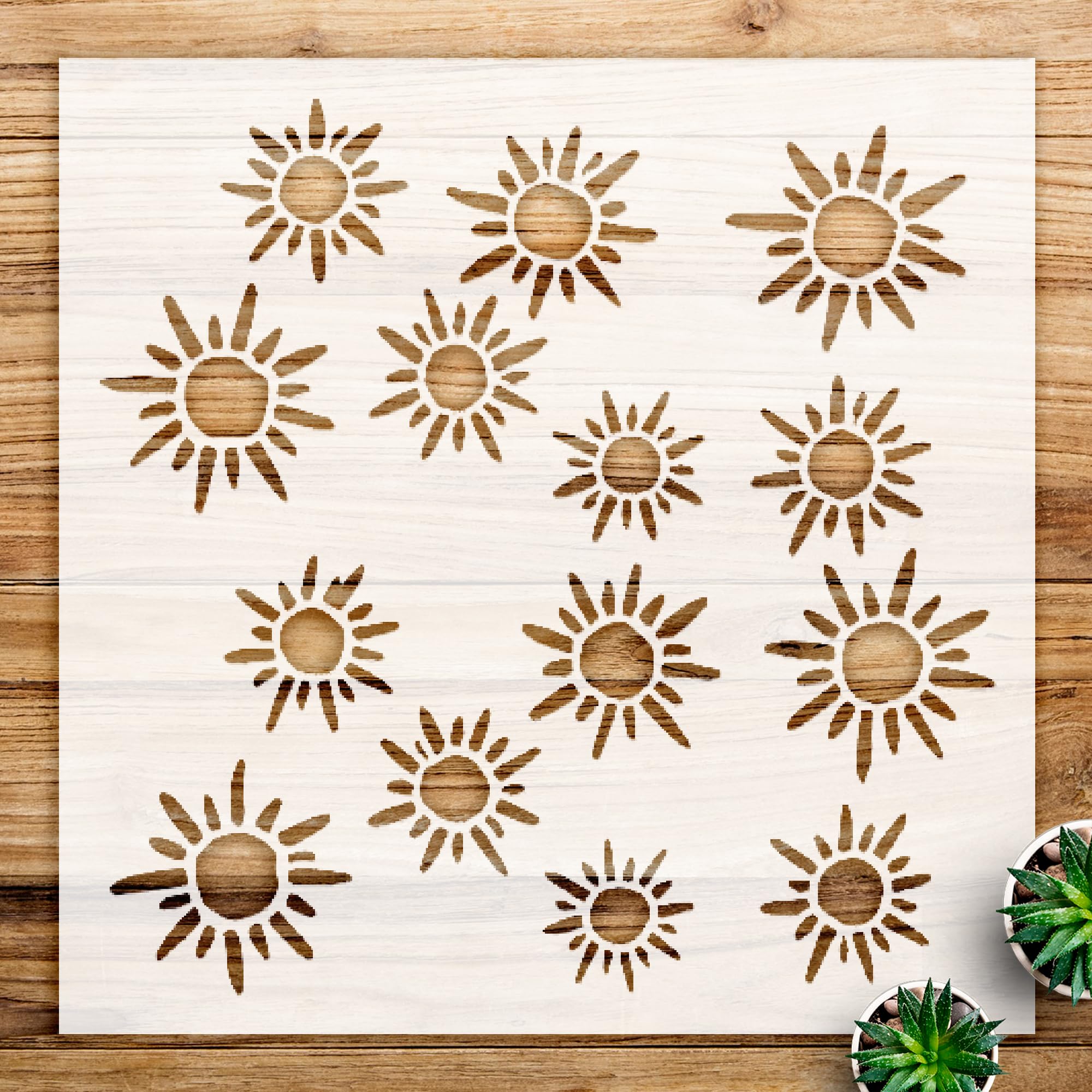 Available in multiple sizes to suit various projects, this stencil is perfect for DIY enthusiasts, home decorators, and crafters eager to infuse their creations with a touch of sunshine.