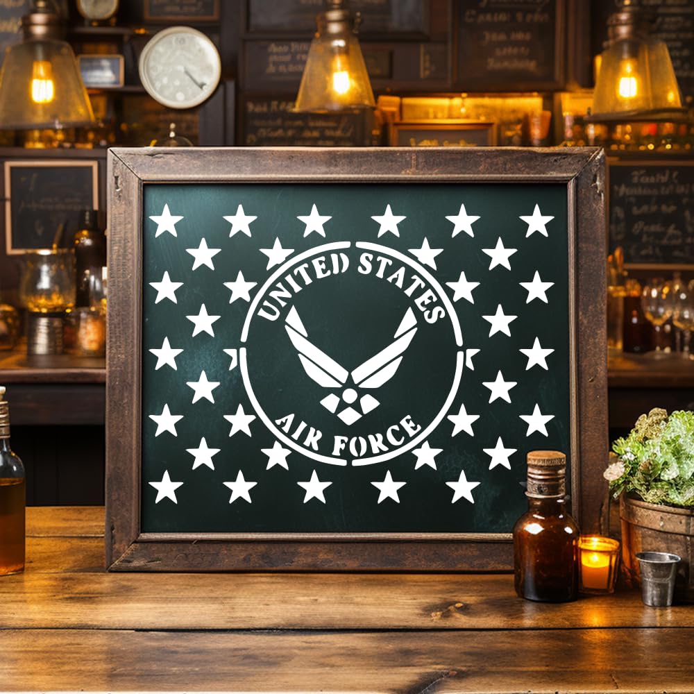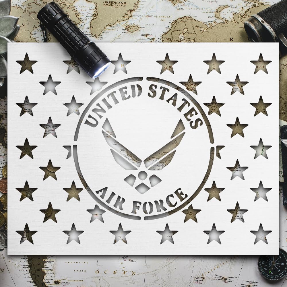 Professional United States US Air Force 50 Stars Flag Union Stencil Template Reusable for Painting on Walls, Wood, Glass, Scarpbooking, Graffity, Arts and Crafts, DIY LIONX stencil for creating beautiful designs on various surfaces. Perfect for painting on wood, fabric, walls, and other materials. Reusable and durable for multiple projects.