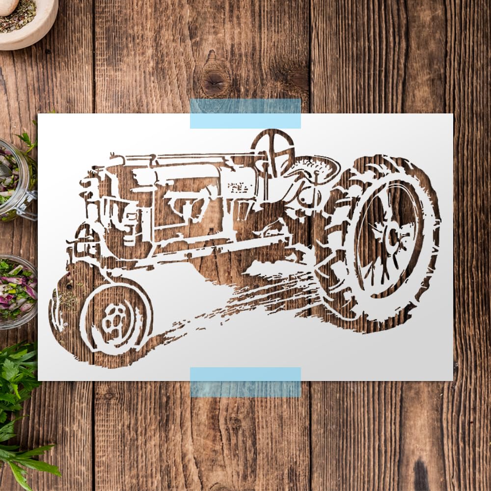 Professional Vintage Tractor Logo Stencil Template, Reusable 10mm Mylar, Perfect for Arts, Crafts, Scrapbooking, Airbrush Painting & Drawing stencil for creating beautiful designs on various surfaces. Perfect for painting on wood, fabric, walls, and other materials. Reusable and durable for multiple projects.